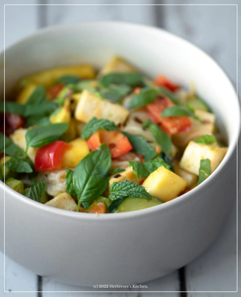 If you’re looking for really easy, fresh recipes this summer, consider the cold noodle salad. This Vegan Thai Noodle Salad with Sweet Chili Vinaigrette recipe comes together in less than 30 minutes and its colorful presentation makes for a great way to showcase your farmer’s market haul.